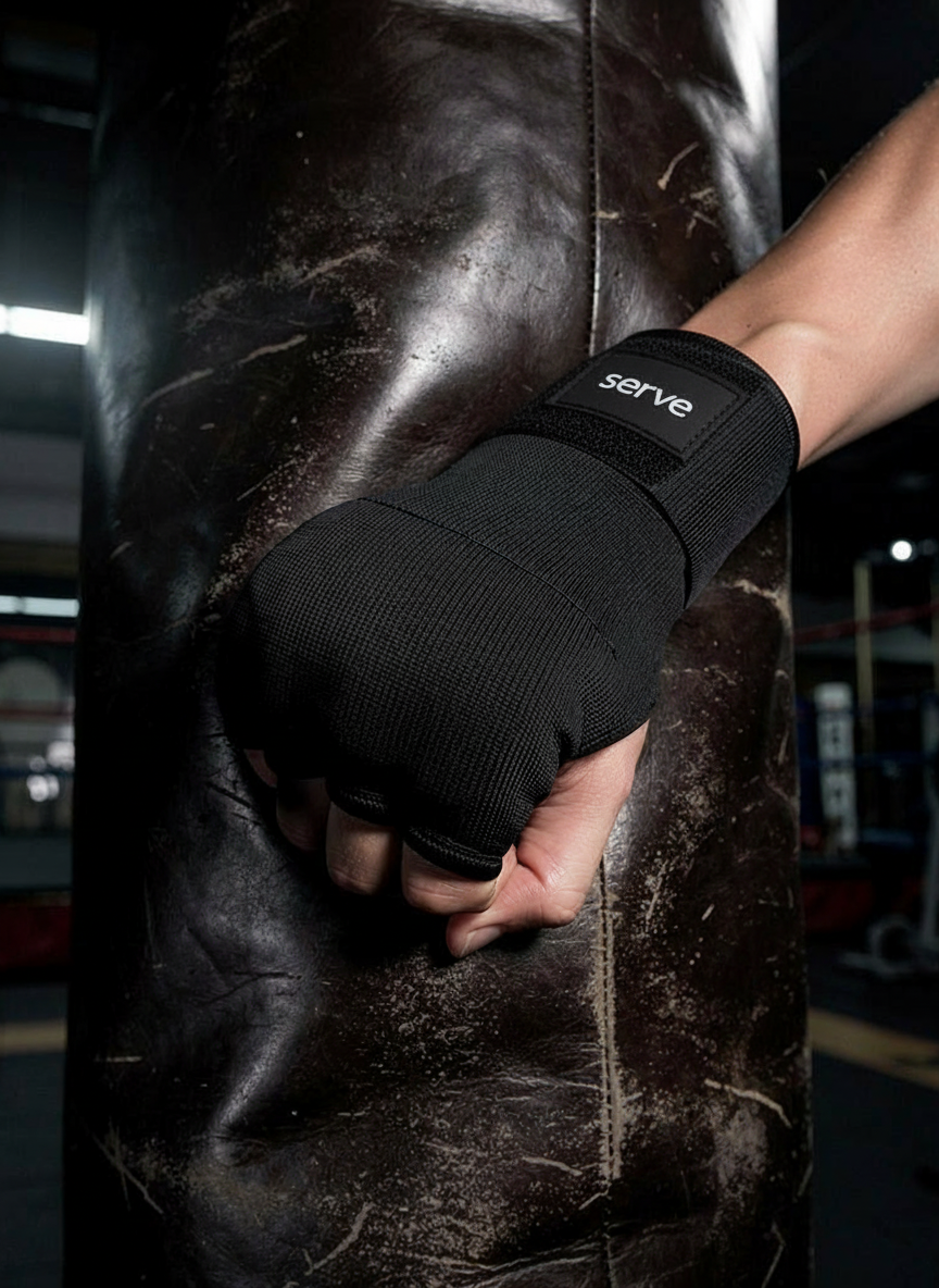 The Serve Hand Wraps are designed for the fighter who strikes with purpose — even in the toughest rounds. Premium black elastic with branding offers wrist stability and knuckle protection. Whether sparring or hitting heavy, your hands stay guarded and your power stays unleashed.